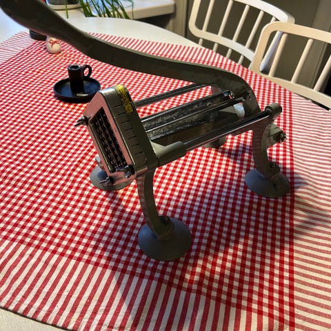 - Easily cuts potatoes up to 6" long into 1/2" french fries