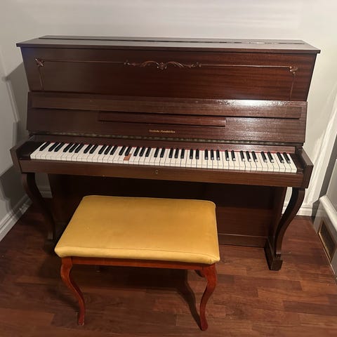 Litet vackert Piano tillverkat i trä från Melodigrand. Bortskänkes mot upphämtning