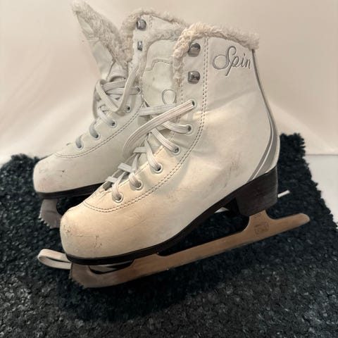 Skridskor för barn i storlek 36 med vit färg. Skridskorna är avsedda för allmän användning inom skridskosport och har en klassisk design med snörning och en stabil klack. Insidan är fodrad för komfort och värme. De är slipade och användes bara 2-3 gånger.