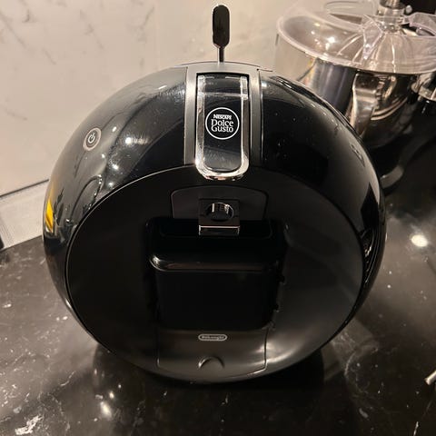 Säljer en stilren och lättanvänd Nespresso kaffemaskin från De’Longhi med inbyggt mjölksystem. Maskinen fungerar som den ska och brygger gott kaffe.