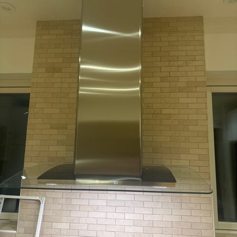 En stilren, vinklad fläkt i rostfritt stål med synliga filter och träffsäker industrikänsla. En LED ljuslist lyser effektivt upp tillagningsytan och kan dimmas när maten är klar att serveras.