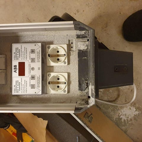 obetydligt använd Garo motorvärmarbox med dubbla uttag.