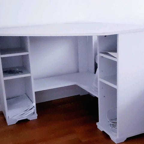 Klassiska design vit bokhylla (två sektioner)med hyllor för att skapa en dekorativ och praktisk känsla i ditt hem. bra till arbetsrum, barnböcker. Det passar också perfekt i badrummet eller köket. Hörnskrivbordet är perfekt för att maximera ditt arbetsutrymme och se snyggt ut med sin moderna design. Den kommer med praktiska hyllor, perfekta för att hålla ordning på kontorsmaterial, böcker. En mindre hylla H: 90cm, B: 75, D 35 ingår i priset.