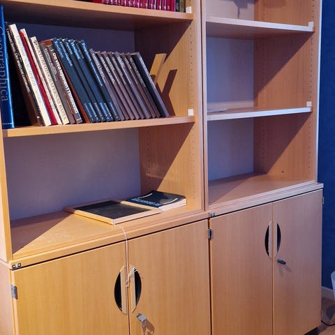 Skrivbord och hyllor