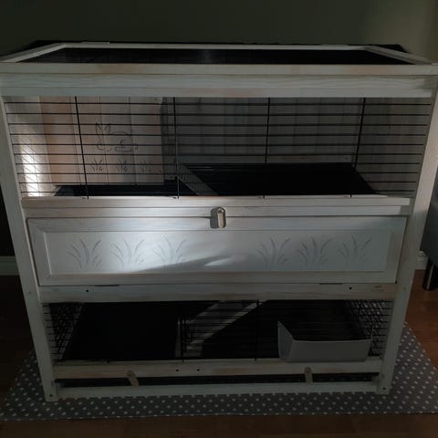 Använd bur och tillbehör säljes. Bur storlek 135x66 cm. Inkl även bord.Endast upphämtning i Smygehamn