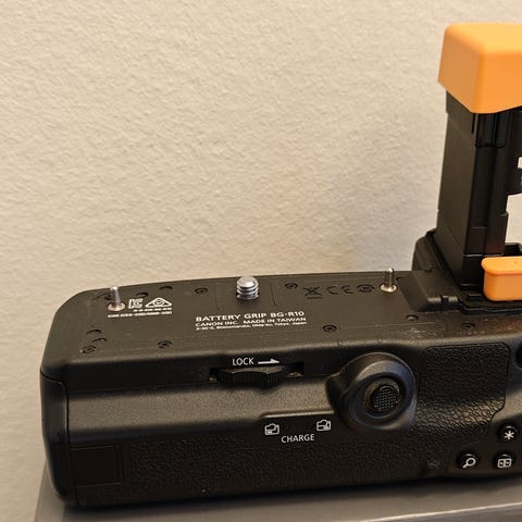 Original Canon batterigrepp BG-E4 för Canon EOS 5D (classic). Ger bättre grepp vid vertikal fotografering och möjlighet till extra batterikapacitet.