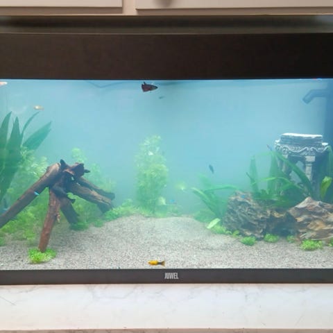 Juwel akvarium 180 liters med alla tillbehör och fiskar säljes. Underskåp följer med.