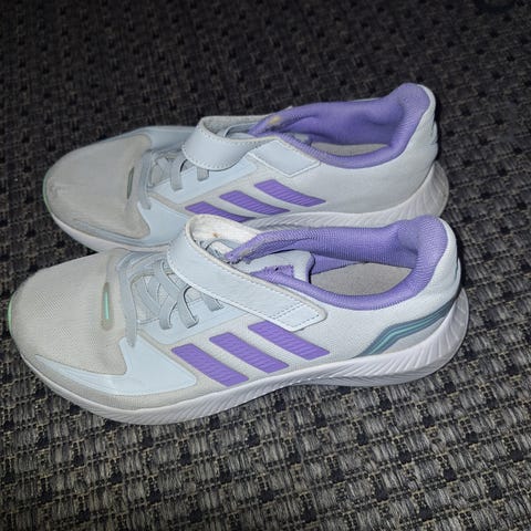 Adidas barnskor i storlek 38 för pojke. Skorna har svart färg med blå och orange detaljer. De är utformade för barn och passar för vardagligt bruk.