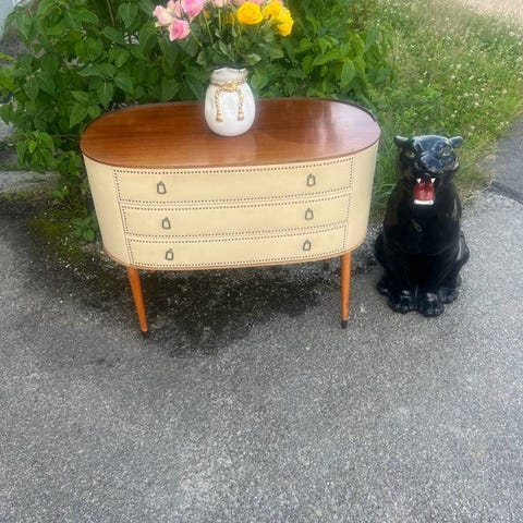 Vacker byrå i björk från 1940-talet. Tre lådor, nyckel medföljer. Mycket fint skick, liten fanerskada.