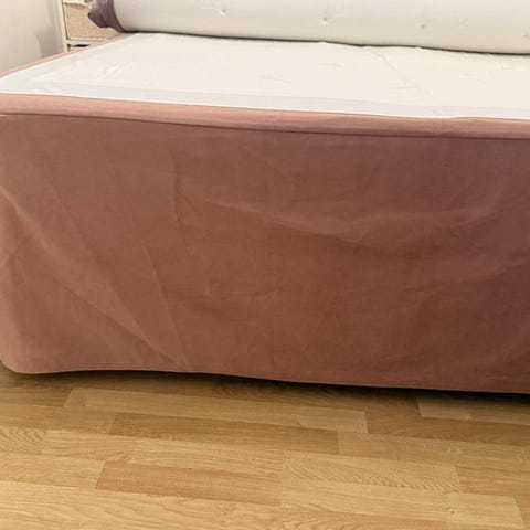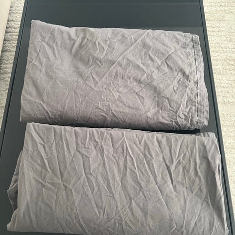 Två stycken sängkappor i limegrönt som piffar upp sängar som kanske inte ser så bra ut men är sköna att sova i. Höjden på kapporna är 34cm, längden 200cm och bredden är i dagsläget 80cm men går att sprätta upp sömmen så de passar till 90-sängar.