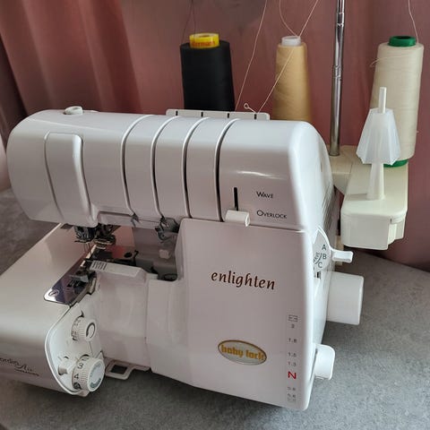 Singer Overlock som också är en täcksöms- och kedjesömsmaskin. Modell 14T968DC.