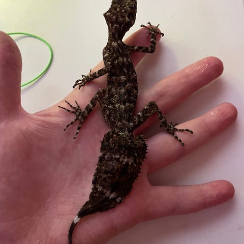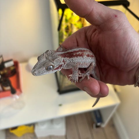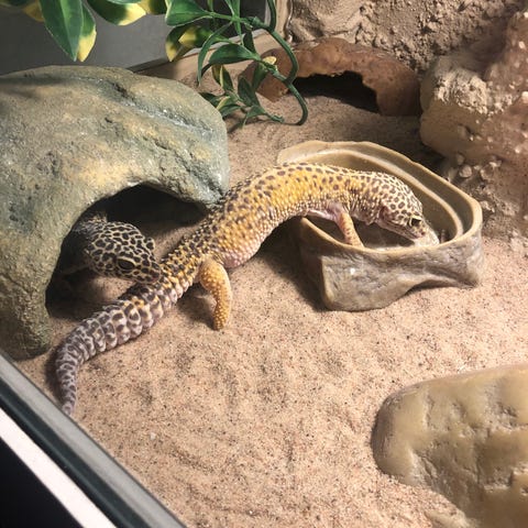 1 mindre gecko, juvenil, i ett eget mindre terrarium.