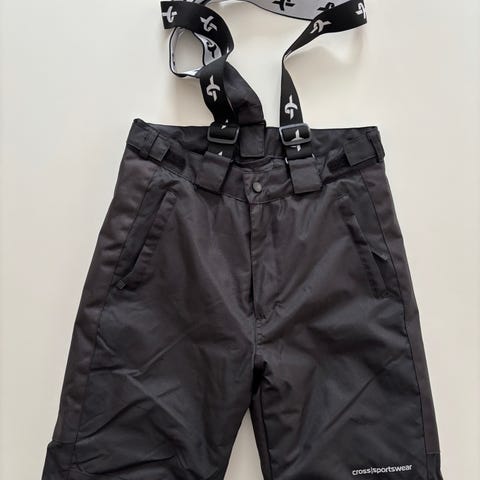 Skidbyxor med hängslen. Två små revor (endast översta tyglagret) längst ner på vänster byxben.