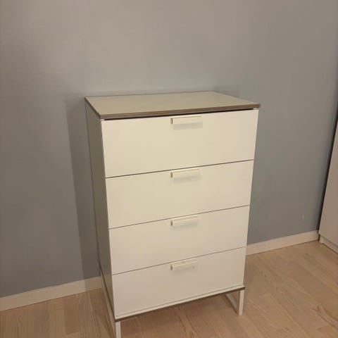 Byrå med lådor i trä och vitt