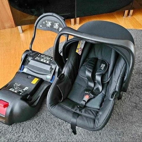 Babyskydd från Britax Römer, medföljer Isofix bas. Kan användas med Isofix eller bara bälte.