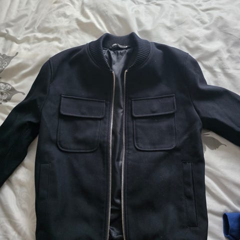 Säljer en mycket snygg jacka i kort modell från Zara. Två fickor, stängs med metallhake.Den är oanvänd, prislapp sitter kvar. Nypris: