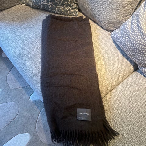 Blå Mohair pläd / filt från Stackelbergs. Dimensioner är 130x170