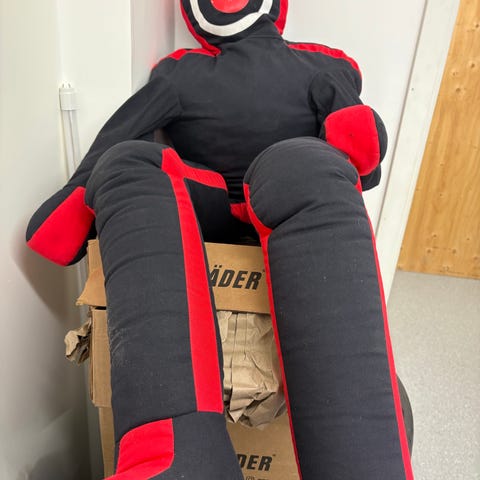 Fylld docka för tränings av t.ex jujutsu. Upphämtning sker på Lillbrostigen 5, 18441 (Åkersberga). Den är lika stora som en människa.