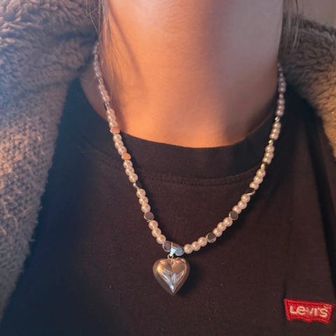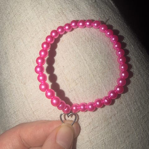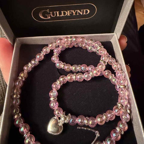 Armband med gammelrosa pärlor och guldfärgat hjärta