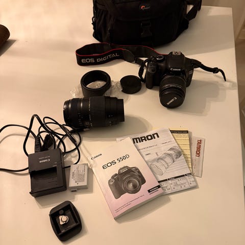 * Laddare, 3 st batterier, 4 GB minneskort, överföringskabel mm