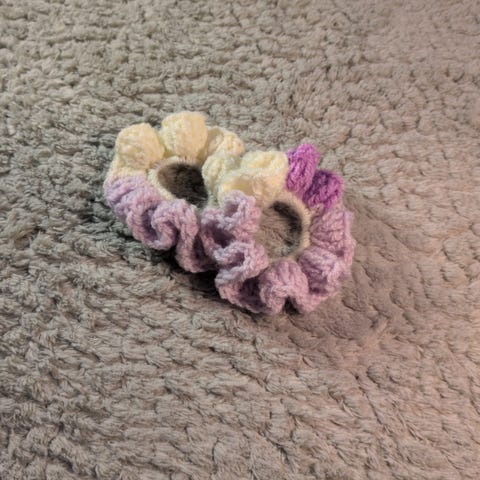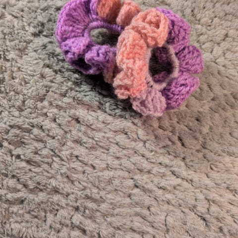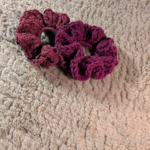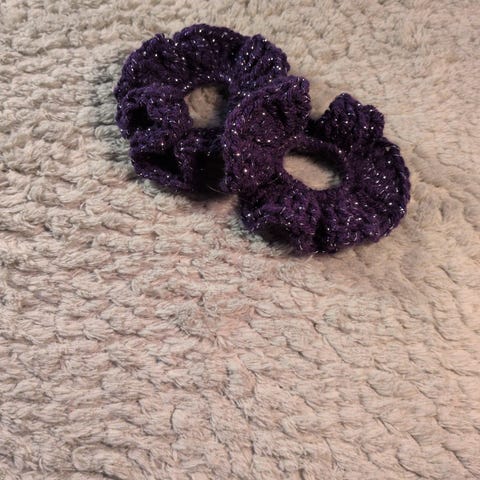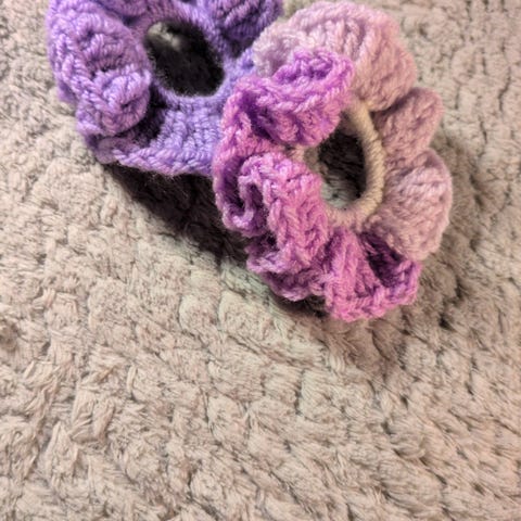 Set med två stycken ljuslila virkade scrunchies.