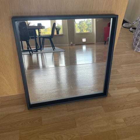 Spegel med piedestal i trä