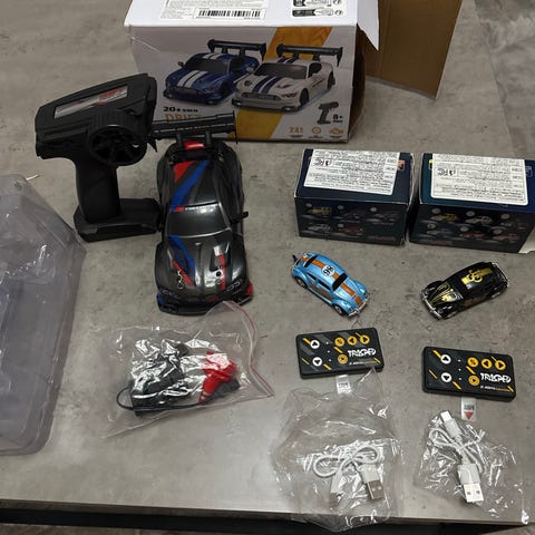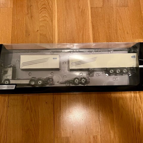 Set med , lastbilar och vagnar i olika färger och modeller. Innehåller flera lastbilar med olika typer av vagnar och tankar. Passar för samling eller modelljärnvägsbygge.