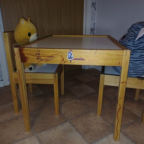 Vi hade legoplattor ovanpå, för att underlätta bygge. Dessa kan skickas med om det önskas (dock är de inte original Lego).