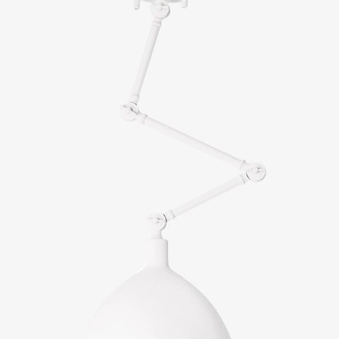 Går att ändra hur taklampans design ska se ut genom att placera de snäckformade lampdelarna mot eller inuti varandra.