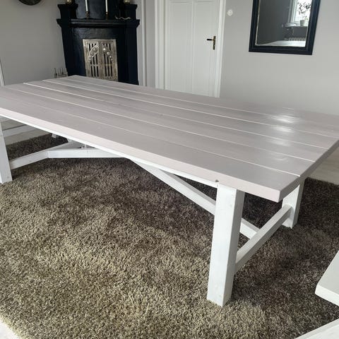 Matbord specialbeställt från snickeri. 240x120 cm. Superellips.