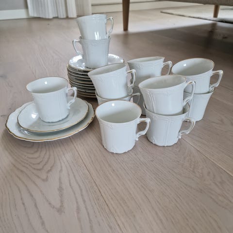 Kaffeservis Hackefors Aniara 12 koppar, 12 fat, 12 assietter mm
