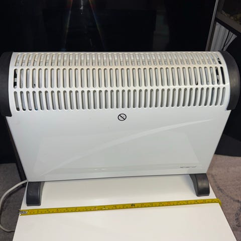 Master elektrisk konvektorvärmare i vit färg. Utrustad med justerbar termostat och bärhandtag för enkel transport. Passar för uppvärmning av mindre till medelstora rum.