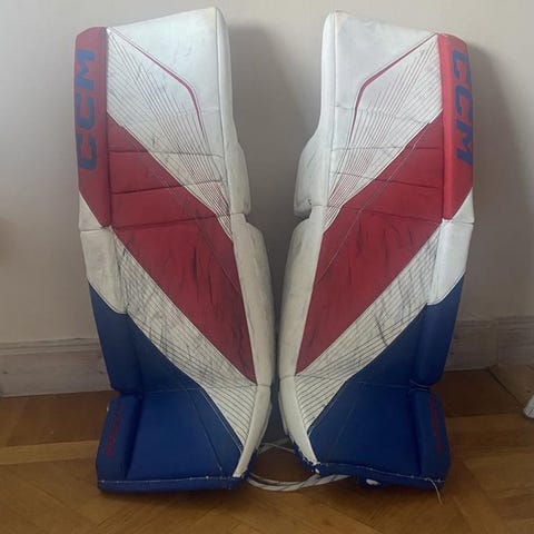 CCM axis 1.9 målvakts plock, stöt och benskydd i färgerna röd vit och svart.