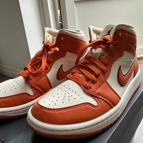 Supersnygga Air Jordan WMNS Air Jordan 1 Low SE sneakers i storlek 40/ US 8,5. UK 6. Skorna är helt oanvända så och vita med röda detaljer och har en låg modell. Nypris är ca 1800kr och priset lan diskuteras. Hör av dig vid funderingar eller frågor!