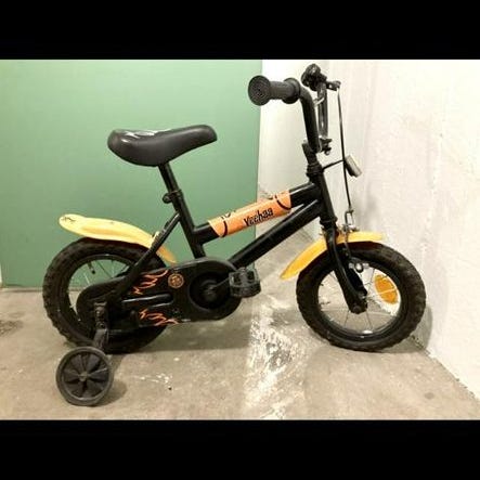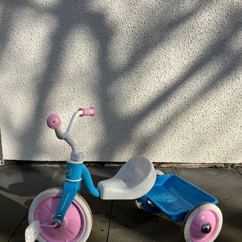 En klassisk röd trehjuling för barn. Perfekt för de första äventyren.