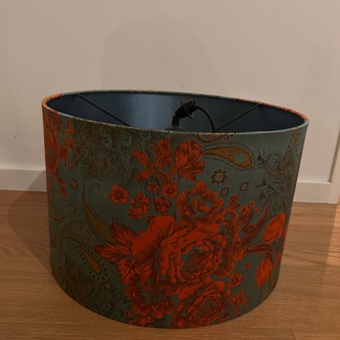Stor lampskärm till taklampa. Svart på utsidan och guldig på insidan.