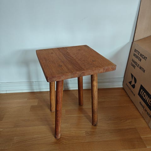 Pallen på bilden är en bastupall i furu, ofta tillskriven den finske designern Olof Ottelin. Den tillverkades under 1960-eller 1970-talet av foretaget Finnsauna Lagerholm i Finland.