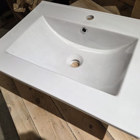 Tvättsställsskåp med handfat utan bottenventil och kran. Passar till mindre toalett/badrum