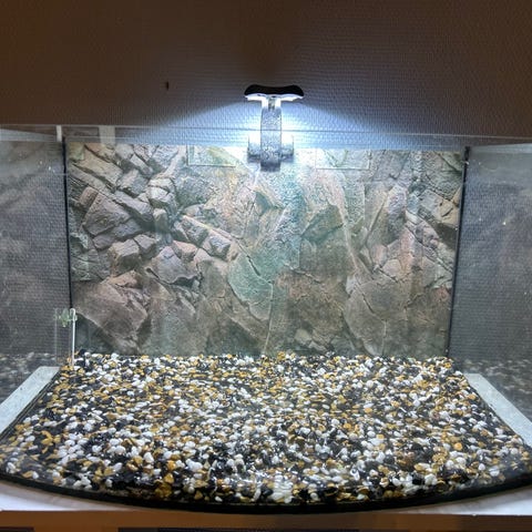 Pump, doppvärmare, grus, växter, prydnader, mat, håv och vatten tömmare.