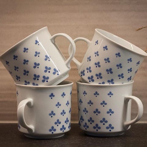 Coventry Blue Adelaide skål med grenar och fåglar crèmevit och blå