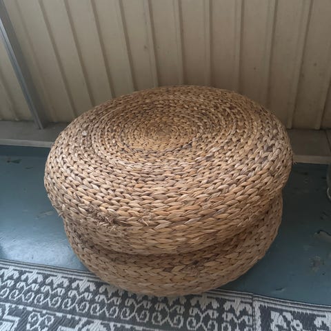 2 st rustika korgar tillverkad i flätat naturmaterial/hampa. Formen är semi-rund.