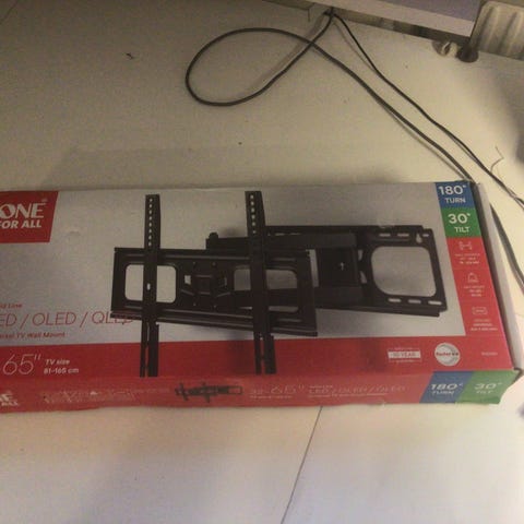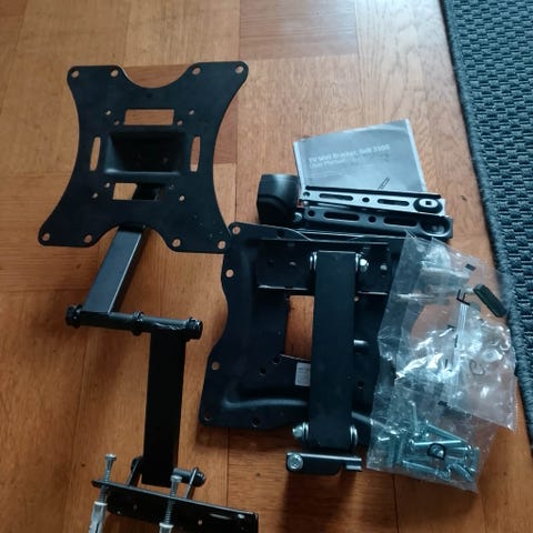 Oanvänt takfäste till mellan 32”-70” TV med fjärrkontroll. Vi har inte använt detta fäste då vi i slutändan bestämde oss för att ha en vanlig TV bänk i stället. Vi har endast plockat upp det ur sin kartong och tittar på det. Så helt nytt!