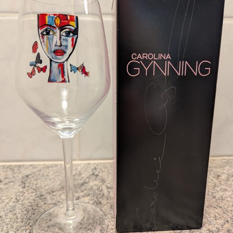 Två stycken Carolina Gynning rödvinglas , kan köpas separat för 150kr/st.