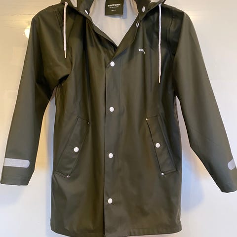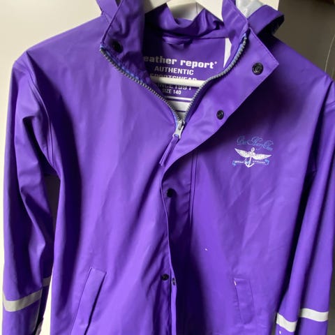 Svart regnjacka i galon. Knappt använd. Avtagbar huva. Relexer i ryggens nederkant.