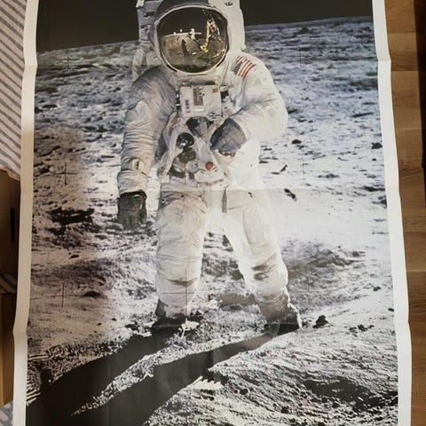 Enormt stor tavla av Månlandningen 1971, NASA. 199cm hög x 137cm bred.