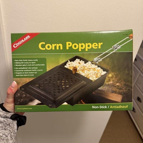 Med Popcorn Pan från Espegard gör du enkelt popcorn över öppen eld! Denna popcorngryta är tillverkad av rostfritt stål med perforerad yta och har ett handtag för att både kunna bäras och hängas upp över elden.