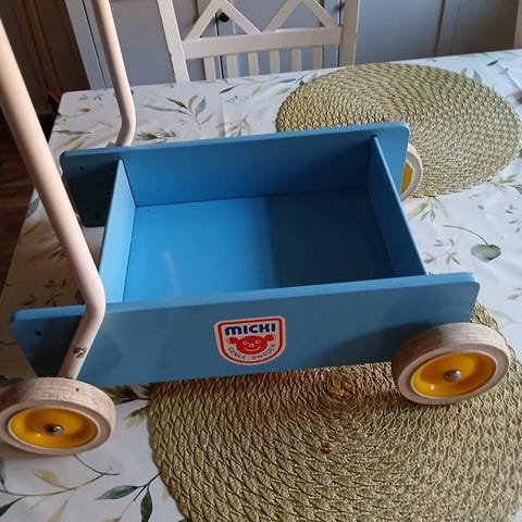 Lära gå vagn MICKI i trä med stålbygel