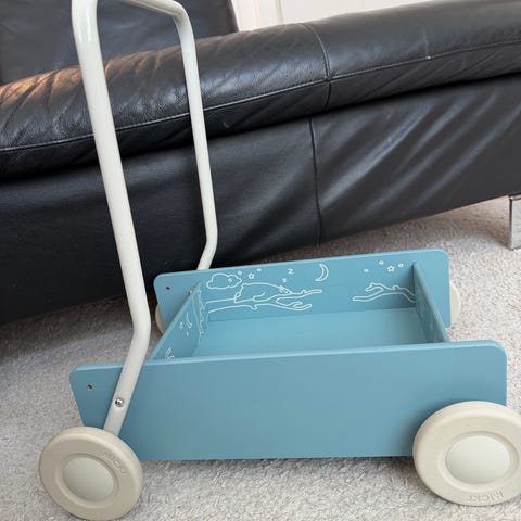 Handtagsbygel kan vändas framåt för minsta barnen sedan som den nu är om lite större barn vill använda den som lastkärra.