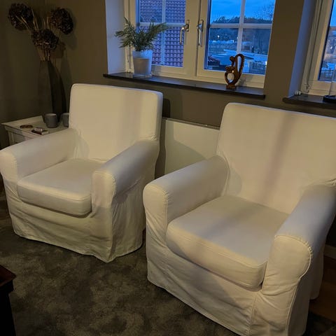 Två stycken stilrena och bekväma Howardfåtöljer från Burhéns säljes pga platsbrist. Det finns ett par mindre fläckar som ej har behandlats så de går förhoppningsvis att få bort, se bilder.