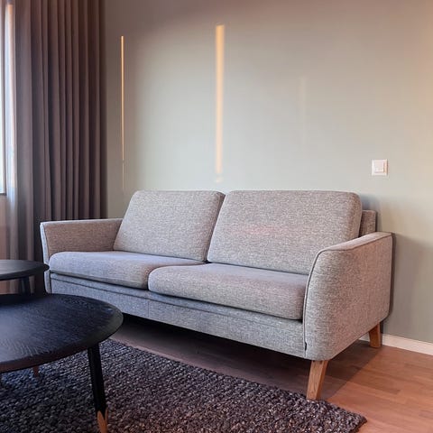 Två stycken ljusgrå Howardfåtöljer från Burhéns